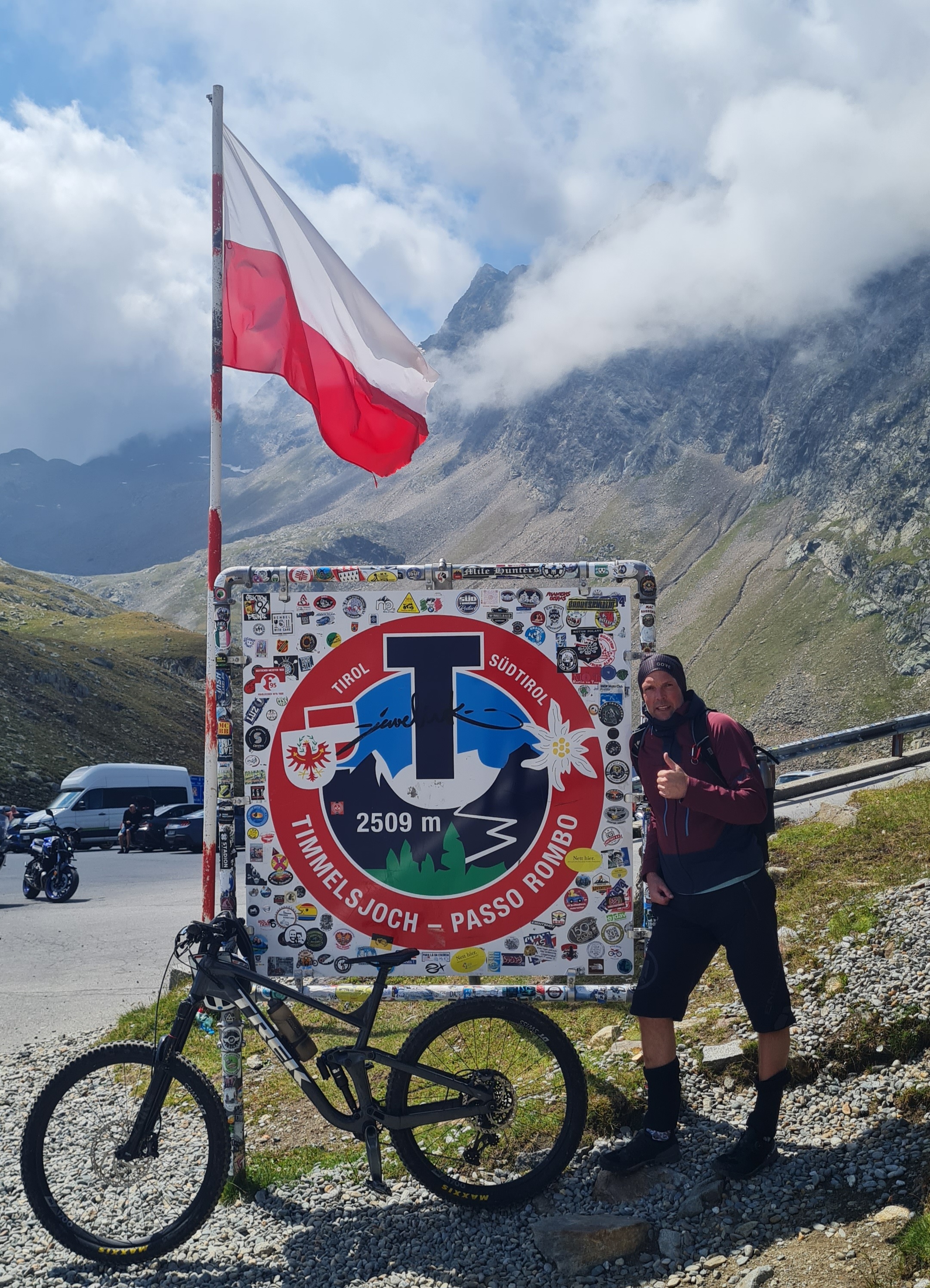 Zur Wochenmitte hin wurde das Wetter endlich besser und es konnte das Timmelsjoch (Grenzpass Österreich/Südtirol auf 2509 über N. N. in Angriff genommen werden. Die ersten Höhenmeter bis zur höchst gelegenen Gemeinde Österreichs, Obergurgl, Seehöhe von 1.930 Metern, ersparten wir uns und entschieden uns für den Linienbus von Sölden aus. Schließlich hieß es aber dann doch noch treten… 750 hm waren es bis zur Kaspressknödelsuppn, Weizen, Espresso und natürlich dem ersehnten Traileinstieg. Entlang des rauschenden Timmelsbachs, einer tollen Aussicht und einem Grinsen im Gesicht gings teils ganz schön ruppig und materialermüdend durch die ein oder andere S3/S4 Stelle zurück ins Tal, in die Pension. Während Oli mit seiner mobilen Werkstatt noch alle Hände voll zu tun hatte, die Bikes für den nächsten Tag fit zu machen, wuselten alle anderen um einen ordentlichen Grillabend auf die Beine zu stellen.